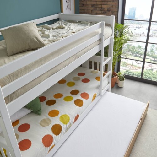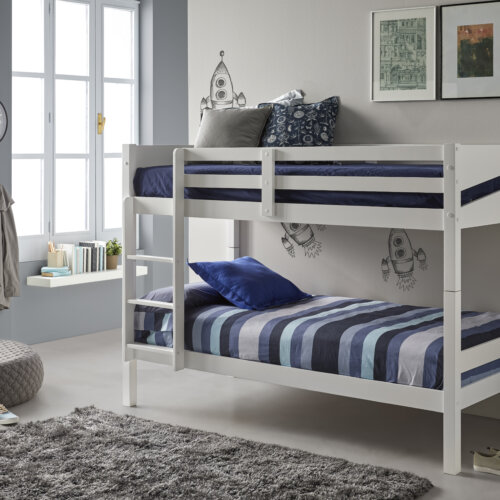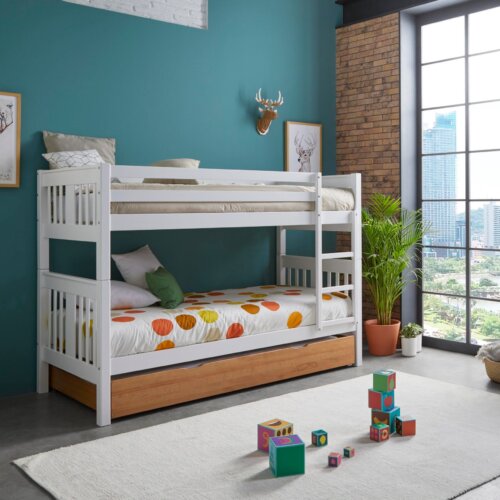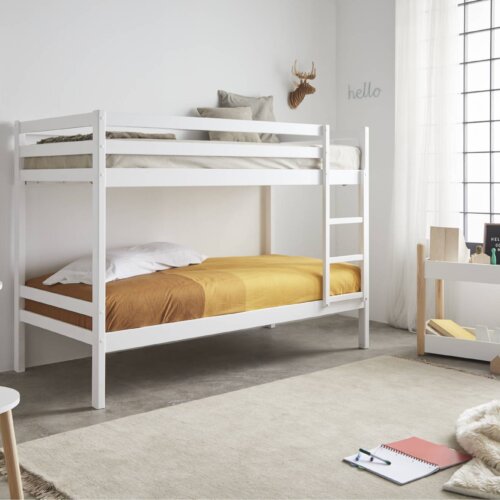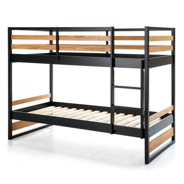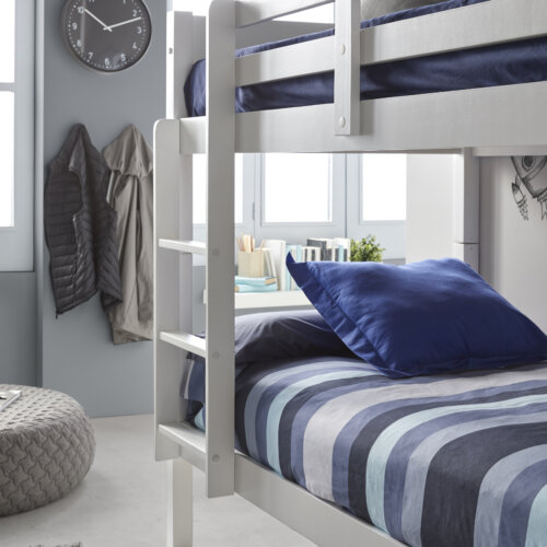 Nuestro pack práctico y bonito: litera de madera con laterales protectores y escalera frontal + cajón con ruedas. El acabado antracita/roble aporta calidez moderna. Hecho en España, pensado para familias que quieren orden y estilo en un solo gesto.